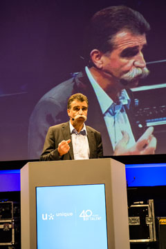 Bild links: Heiner Brand, unser ex Bundeshandballtrainer, sprach auf der 40 Jahr Feier von Unique. Jeder brauche einen Coach, um sein Talent entdecken und entwickeln zu können privat, im Sport oder im Beruf. Auch die Unique Mitarbeiter in den Niederlassungen seien solche Coaches für ihre Bewerber. Auch sie entdecken und entwickeln Talente, sie integrieren Talente in ein Team und lassen Erfolgs-Teams entstehen.